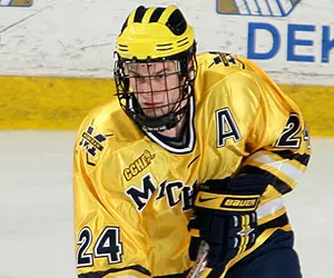 At 8:54 in the middle stanza, Sauer and Mark Mitera(Livonia, Mich.) each made excellent saves, prohibiting Ohio State from putting any more tallies on the board. Ohio State defender Chris Reed tried to put a shot past Sauer, but the goalie sprawled out across the ice and deflected the disc. Sergio Somma scooped up the deflection and faced an empty net, but Mitera's stick made the save at the goal line.