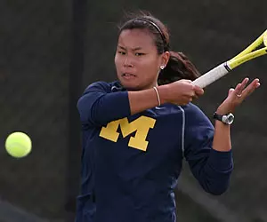 The Wolverines were solid in doubles, as junior Chisako Sugiyama(Parsippany, N.J./The Montclair Kimberley Academy) and sophomore Tania Mahtani(Rancho Palos Verdes, Calif./Palos Verdes Peninsula HS) defeated Julia Bauregger and Mallory Voelker (8-4), Taney and freshman Rika Tatsuno(Rancho Palos Verdes, Calif./Palos Verdes Peninsula HS) outlasted Kyla Iwinski and Ute Schnoy (9-7), and junior Lindsey Howard(Richmond, Va./Mills E. Godwin HS) and freshmen Denise Muresan(Lincolnshire, Ill./Adlai E. Stevenson HS) beat Annette Aksdal and Mikele Smith (8-6).