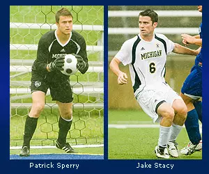 PARK RIDGE, Ill. -- After playing a key role in two upset victories this past week, senior Jake Stacy(Grand Rapids, Mich./Forest Hills Central) and senior/junior Patrick Sperry(Hinsdale, Ill./Hinsdale Central) of the University of Michigan men's soccer team were named Big Ten Offensive and Defensive Player of the Week, respectively, the conference office announced on Monday (Oct. 6). It is the third weekly honor received for both players during their careers.