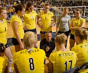 The No. 20-ranked University of Michigan volleyball team (23-7, 11-7 Big Ten) returns home for its final regular-season contests, taking on Indiana Friday (Nov. 28) and No. 1-ranked Penn State Saturday (Nov. 29) at Cliff Keen Arena. First serve Friday is schedule for 7 p.m., while Saturday's contest gets underway at 6 p.m. and can be seen live on the Big Ten Network.