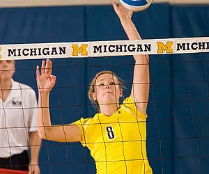 Michigan's usually potent attack was stymied throughout the match, hitting just .144 on the night. Sophomore Lexi Zimmerman(Barrington, Ill./Barrington) dished out 22 assists, her lowest total of the season, while adding a team-best seven digs in the loss.