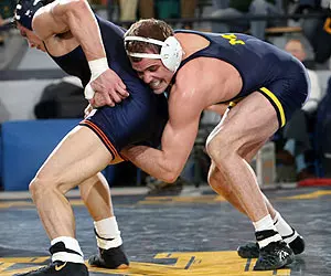 The Wolverines fell behind early in the contest after giving up bonus points in the 125- and 133-pound matches, but freshman Kellen Russell(High Bridge, N.J./Blair Academy) initiated the U-M rally with a hard-fought 4-3 decision over 11th-ranked Ryan Prater at 141 pounds. Russell, ranked fourth, secured the initial lead with a single-leg takedown early in the opening frame and nearly built up riding-time advantage before Prater escaped midway through the period. The Illini wrestler rode Russell for the entirety of the second and evened the score midway through the third with another escape, but Russell stayed on the offensive and retook the lead in the final 30 seconds of the match after shooting in on a double leg and coming out on top of the ensuing scramble on the mat. After Prater pulled within one point with a quick escape, Russell fought off a couple deep shots late to hang on for the win. The U-M rookie leads the Wolverines this season with 23 wins.