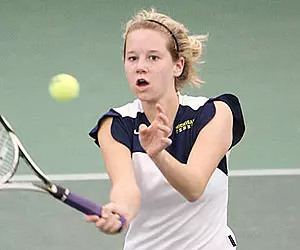 Taney and freshman Rika Tatsuno(Rancho Palos Verdes, Calif./Palos Verdes Peninsula HS) provided the Wolverines with their first doubles sweep of the season thanks to an 8-6 win over Jennifer Meredith and Caitlin Whoriskey at No. 2. Taney and Tatsuno pulled away late in the match, holding serve to go up 7-6 before breaking Meredith and Whoriskey in the final game to seal the sweep.