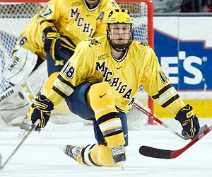 However, the Wolverines responded in the last minute of the second stanza (19:25) to make the scoreboard read 4-2. Porter had the puck behind the goal line and sent it up to Mitera near the top of the left faceoff circle. The defenseman took a shot, and the attempt was redirected into the net by Max Pacioretty(New Canaan, Conn.), who stood just outside the goal crease.