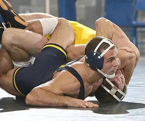 Penn State won the final two bouts -- earning bonus points at 197 pounds -- to seal up its conference victory. U-M had an opportunity to even the team score with a decision in the heavyweight bout, but sophomore/freshman Chad Bleske(Washington, Mich./Romeo HS) fell just short, giving up a takedown with one second remaining in the sudden-victory period. Bleske had gained the initial advantage against 18th-ranked John Laboranti, countering a single-leg attempt midway through the first period to come around and score. Laboranti pulled even with a takedown of his own in the second and, with time ticking down in the extra frame, shot in on another deep single leg, finishing it -- according to the official and under heavy protest from the U-M bench -- with time still remaining.
