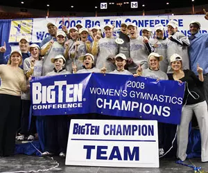 ANN ARBOR, Mich. -- Led by event titles from sophomore Sarah Curtis(Reno, Nev./Reno) and freshman Kylee Botterman(New Lenox, Ill./Lincoln-Way Central), the No. 4 University of Michigan women's gymnastics team won its 16th conference title in convincing fashion, outdistancing its nearest competitor by a full point at the Big Ten Championships Saturday afternoon (March 29) at Crisler Arena. The host Wolverines scored 196.750 on their home floor to defend their 2007 title, while runner-up Illinois finished at 195.750 in the seven-team meet.