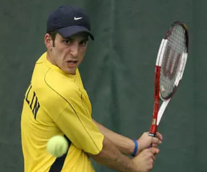 All three U-M doubles teams picked up 8-5 victories to clinch the first team point. Senior Matko Maravic(Zagreb, Croatia/V. Gimnazija) and sophomore George Navas'(Tampa, Fla./Tampa Preparatory School) win over Sasha Ermakov and Ashwin Kumar at the top spot moved the 24th-ranked duo's dual-match record to 8-1. It was just Ermakov and Kumar's sixth loss in 12 matches in 2007-08.