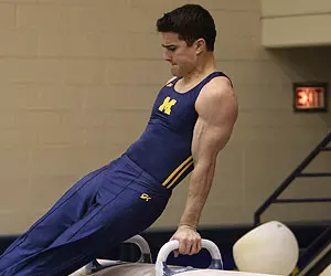 The Wolverines fell behind after the first rotation on pommel horse, but Michigan took the second and third place spots in the event. Freshman Chris Cameron(Winter Haven, Fla./Lake Region) came in second with a 14.850 and David Chan and sophomore Mel Santander(Southborough, Mass./Algonquin Regional) tied for third (14.800).