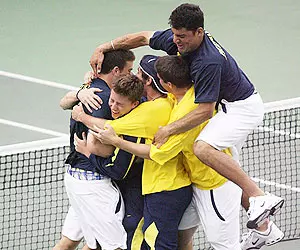 With Michigan leading 3-2, junior Andrew Mazlin(Altamonte Springs, Fla./Lyman HS) completed a 6-3, 6-7(1), 6-3 triumph over Lenoir Ramos at No. 3 singles to send the Maize and Blue to the NCAA Sweet16 for the first time in two decades. Afterstruggling to capitalize on a pair of match points in the second set, Mazlin showed his toughness and earned an early break to go ahead 3-0 in the third frame. Ramos recorded a break of his own to narrow the gap to 4-3, but Mazlin broke back in the ensuing game and then held serve to close out the match. Mazlin finished off the Red Raiders (20-6) with an ace, causing his Wolverine teammates to storm the court in celebration.