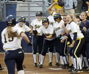 ANN ARBOR, Mich. -- The No. 6-ranked University of Michigan softball team used a 10-run fifth inning that included a pair of grand slams to rally past Wright State 13-5 in its NCAA Regional opener Friday evening (May 16) in front of 2,383 fans at the Wilpon Softball Complex, home of Alumni Field. The Wolverines trailed by four runs midway through the fourth frame but scored 11 unanswered to claim their 13th run-rule decision of the season.
