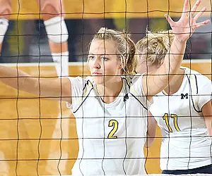In the third set, Michigan took a 13-11 lead on back-to-back kills by Karpiak. The Rockets cut the lead to one at 16-15 before a pair of Toledo errors and a block by Karpiak helped push the U-M advantage to four at 20-16. Zimmerman propelled the Wolverines to the third-set victory, winning three of the final five points for the Maize and Blue, two on second-contact attacks and the third on a joust at the net. U-M got the final point of the match on a Toledo attack error to win the set, 25-17.