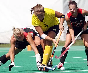 The Wolverines first scoring opportunity came midway through the first half on a penalty-corner opportunity that forced Terp goalkeeper Alicia Grater to make a pair of quick saves. Maryland, however, responded by carrying the ball the length of the field on a three-player break, pulling Pickett out of the cage to challenge and finishing it with a tap-in shot into the open net.