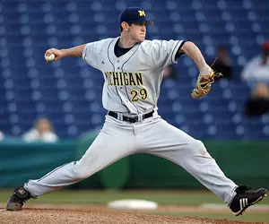 The Wolverines started the day with their second straight walk-off win. After falling down 3-0, U-M came back to tie the game in a three-run sixth and freshman designated hitter Jake McLouth(Whitehall, Mich./Whitehall) delivered the walk-off single to give sophomore reliever Tyler Burgoon(Defiance, Ohio/Defiance) his second straight win in relief. Michigan then followed up that performance with a 16-strikeout effort from Wolverine pitchers. Sophomore starting pitcher Travis Smith(Austin, Texas/Stephen F. Austin) earned nine in five innings for the victory and sophomore hurler Matt Miller(Zionsville, Ind./Zionsville) fanned seven in four innings for the save. A three-run first and a moon shot by junior Mike Dufek(Scottsdale, Ariz./Desert Mountain) in the sixth provided the offense.