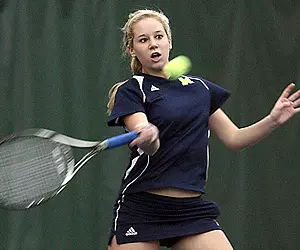 Taney returned to the singles lineup andpicked up a commanding 6-1, 6-1 victory over Blackmore at No. 5, giving the Maize and Blue a 2-0 advantage. Muresan then put U-M in position for the team win with a 6-4, 6-1 decision over Hubbs in her season debut at the third spot. Taney holds a career record of 12-2 in the Big Ten Conference, while Muresan has gone undefeated in 16 careerleague matches.