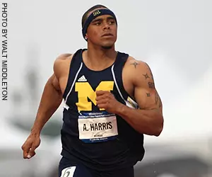 Harris will attempt to be the first U-M runner since Tom Robinson (1959-61) in 1960 to earn All-America honors in the 100 meters when he runs in the finals on Friday (June 12) at 7:45 p.m. CDT.