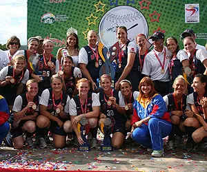 August 9: USA 2, Venezuela 0; USA 3, Canada1 --The Red, White and Blue completed the medal-round comeback, knocking off Canada, 3-1, in the championship finale -- two days after following to their North American rival by the same margin. After the Canadian squad knotted the score at one apiece in the top of the third, Team USA surged ahead with a run in the home half and another in the fourth to wrap up the team title. In earlier action, the U.S. squad battled past host Venezuela, 2-0,in front of a partial crowd, using RBI doubles in the first and second frames to gain the only advantage it would need. Senior Maggie Viefhaus started both contests at designated player and drove in the first tally vs. Canada ona second-inning sac fly. [Game 1 Boxscore|Championship Boxscore|Recap]