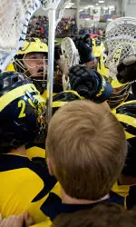 Michigan's inaugural varsity contest was a 13-9 loss to Detroit, the state's only other varsity program, on Feb. 12 at Ultimate Soccer Arenas in Pontiac, Mich. The Wolverines held leads of 2-0 and 4-2 and were tied with UDM at halftime, 5-5. Knotted at 6-6 midway through the third quarter, Detroit scored six of the next seven goals to pull away for the victory.