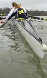 Hello from Bloomington, Indiana! The team arrived in Bloomington Saturday evening, and we are busy preparing for our biggest regatta of the season: the NCAA Championships. This year, 22 teams have been invited to compete for the coveted title of national champion, and the Wolverines are ready for the three days of racing this upcoming weekend. Until the racecourse opens Wednesday afternoon, we are training out of Indiana University's boathouse with a couple other teams who have arrived early.