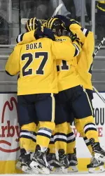 » Tony Calderone and Adam Winborg each tallied empty-netters in the final minute.