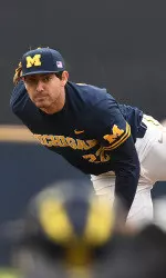 PISCATAWAY, N.J. -- Starting pitcher Michael Hendrickson and reliever William Tribucher combined to allow just four hits as the No. 17-ranked University of Michigan baseball team defeated Rutgers by an 8-3 score on Sunday (April 30) to clinch the series at Bainton Field.