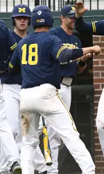Then, with two outs in the top of the 10th, Jake Bivens, Johnny Slater and Michael Brdar each singled with two strikes on them to provide the go-ahead run in a 2-1 win over Michigan State. William Tribucher stranded the potential tying run at second base in a driving rain that developed in the bottom half of that inning, and No. 15 Michigan (42-13, 16-8 Big Ten) had itself a very special triumph Saturday afternoon (May 20) at McLane Stadium.